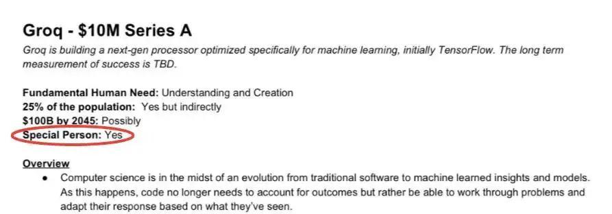 与此同时,能够获利的当然也有在 Groq 创始阶段火眼金睛的投资人。硅谷正在流传的是斯里兰卡裔风投人 Chamath Palihapitiya 在 2017 年给 Groq 在 A 轮投资时的评价: