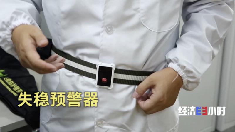 除了这款框架式外骨骼机器人,还有一款便携式的“机器外挂”。今年87岁的李桂英老人穿上它以后,可以丢掉拐杖,进行散步锻炼。