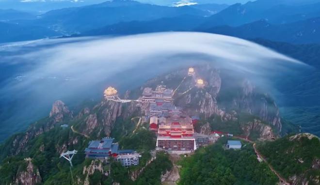 在魏先生的视频里,薄膜一样的气罩刚好罩在了老君山上的福禄寿喜财五个金殿上方,比修仙电视剧的特效镜头更加真实。能够拍到这样的镜头,魏先生表示纯属偶然:“这个素材是机缘巧合,当天我准备拍晚上6点半老君山金殿亮灯云雾缭绕的场景,没想到却拍到了‘护宗大阵’。我之前知道有这种景象,老君山景区的官方账号发过,我也想拍,但是以前没碰到过。”